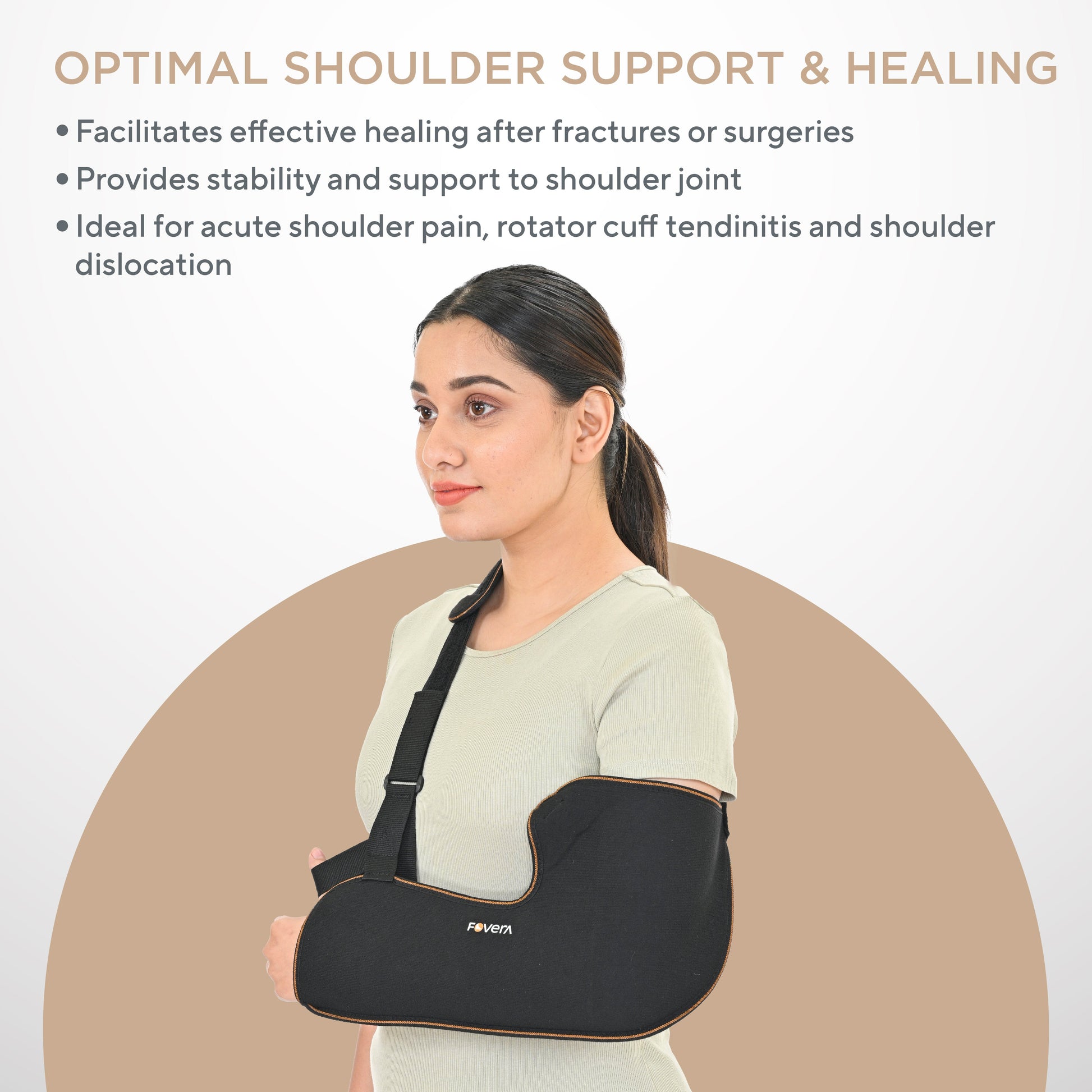 - FOVERA ARM POUCH SLING USES: The FOVERA Arm Pouch Sling is designed for various conditions that cause shoulder discomfort, such as acute shoulder pain, rotator cuff tendinitis, shoulder subluxation, dislocation, and post-surgery recovery. It provides gentle yet effective support to alleviate discomfort.