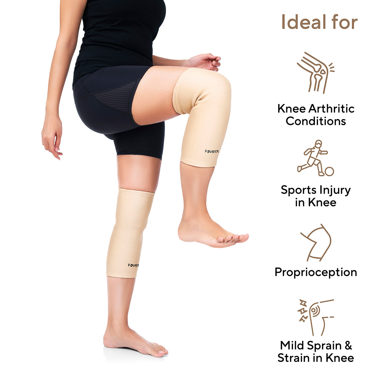 - TARGETED KNEE PAIN RELIEF: Fovera Knee Cap provides compression support to help alleviate knee pain and discomfort, allowing you to move with greater ease and comfort. Made from breathable and sweat-wicking material, which is not only skin-friendly but also effective in preventing unpleasant odors.