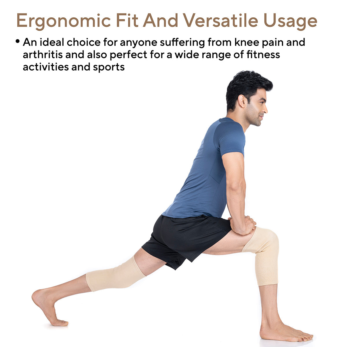 - PREMIUM QUALITY AND COMFORT: Made from the right combination of soft polyester yarn, heat resistant rubber threads & spandex material, these knee caps are breathable, lightweight, and comfortable to wear for extended periods. They are designed to stay securely in place, providing reliable support throughout your activities.